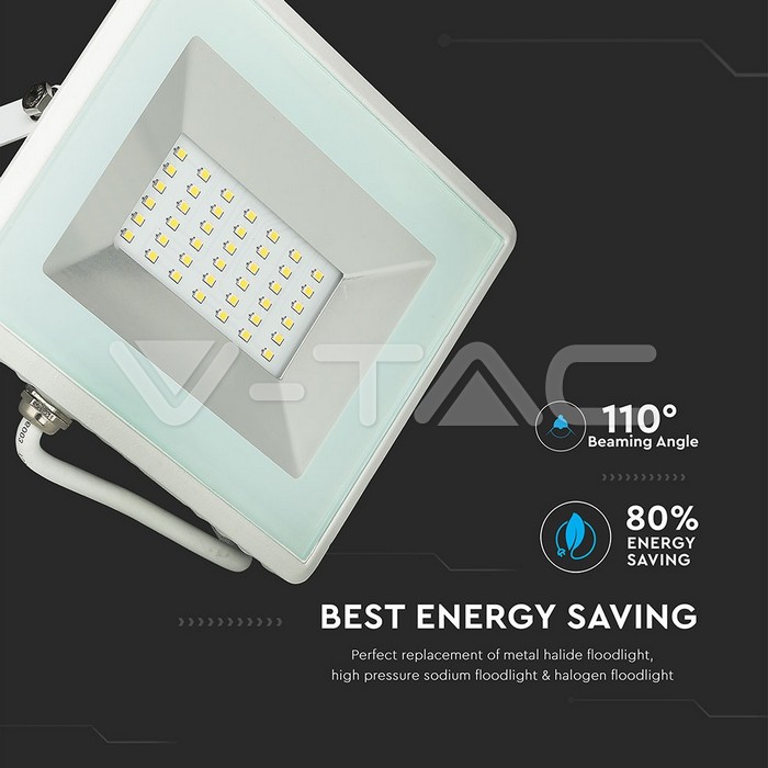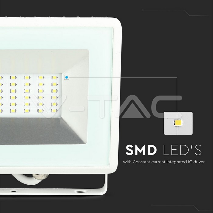 LED прожектор SMD, серии E, 30 Вт, белый корпус, свет: теплый белый