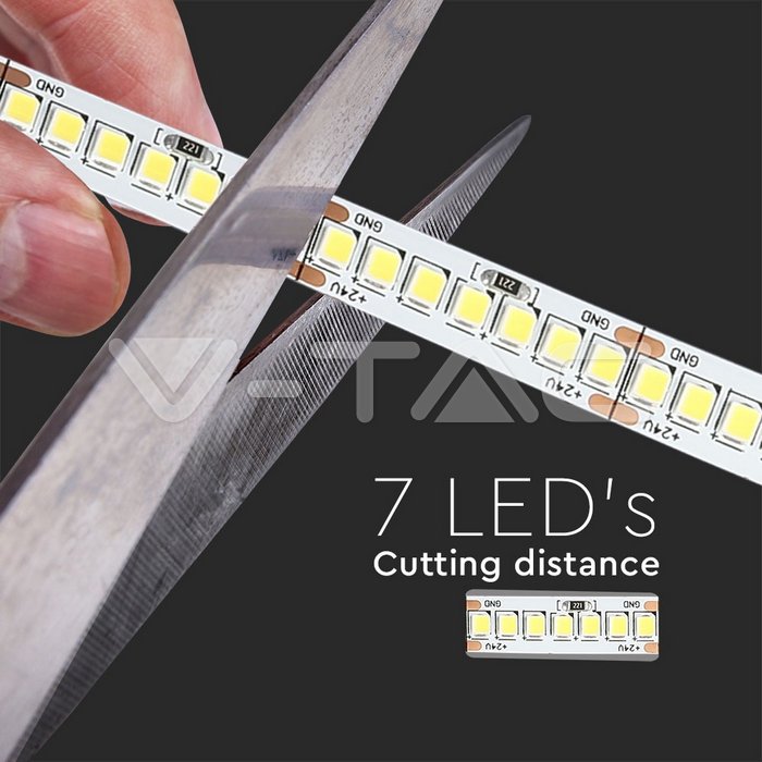 Медные площадки расположены через каждые 7 светодиодов. Разрезайте только по заданной линии разреза между медными точками.