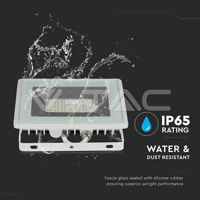 LED прожектор SMD, серии E, 30 Вт, белый корпус, свет: теплый белый